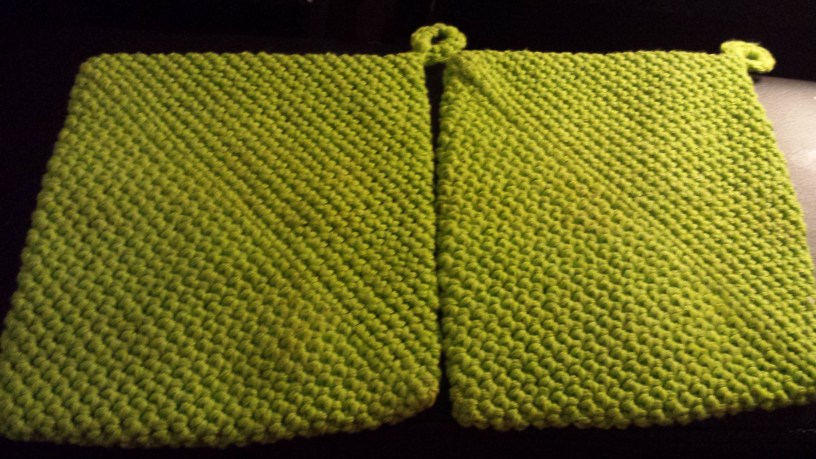 I have scoured many a home store and kitchen store to find just a normal square potholder. They are not easy to find. Nowadays, they have rectangular ones with rubber underneath and hand mitts. Plus, the ones at the stores are expensive. I decided with my new-found talent in crochet to make some for the house. I once again browsed youtube until I found out the basics on how to make one. Here is my own version.
